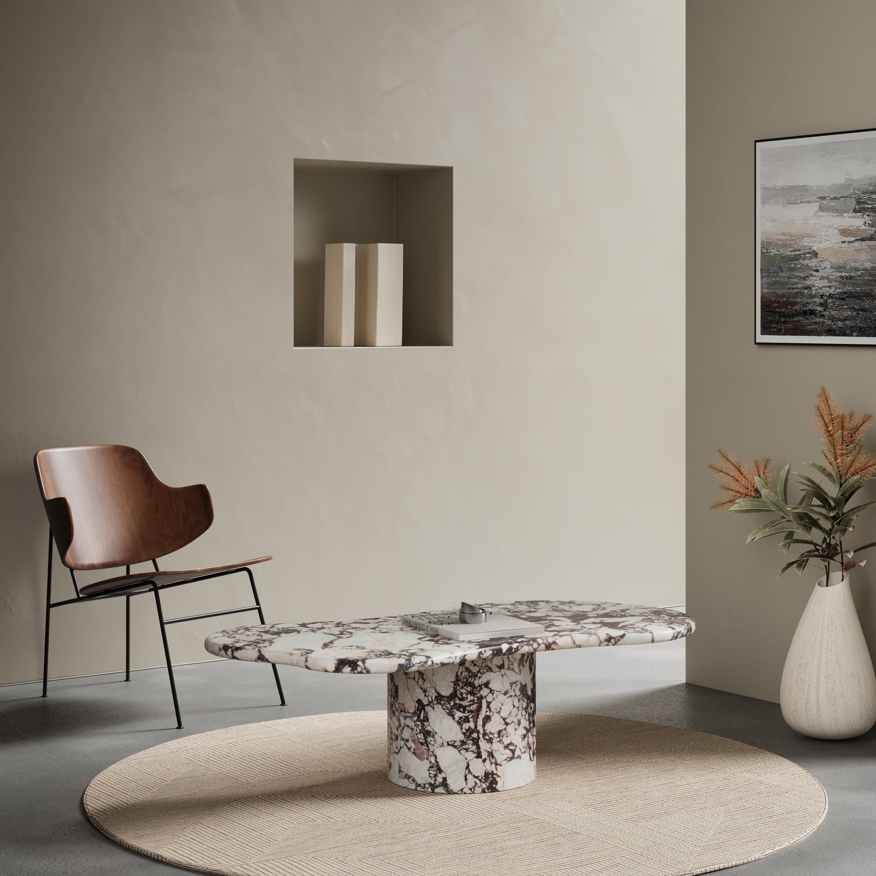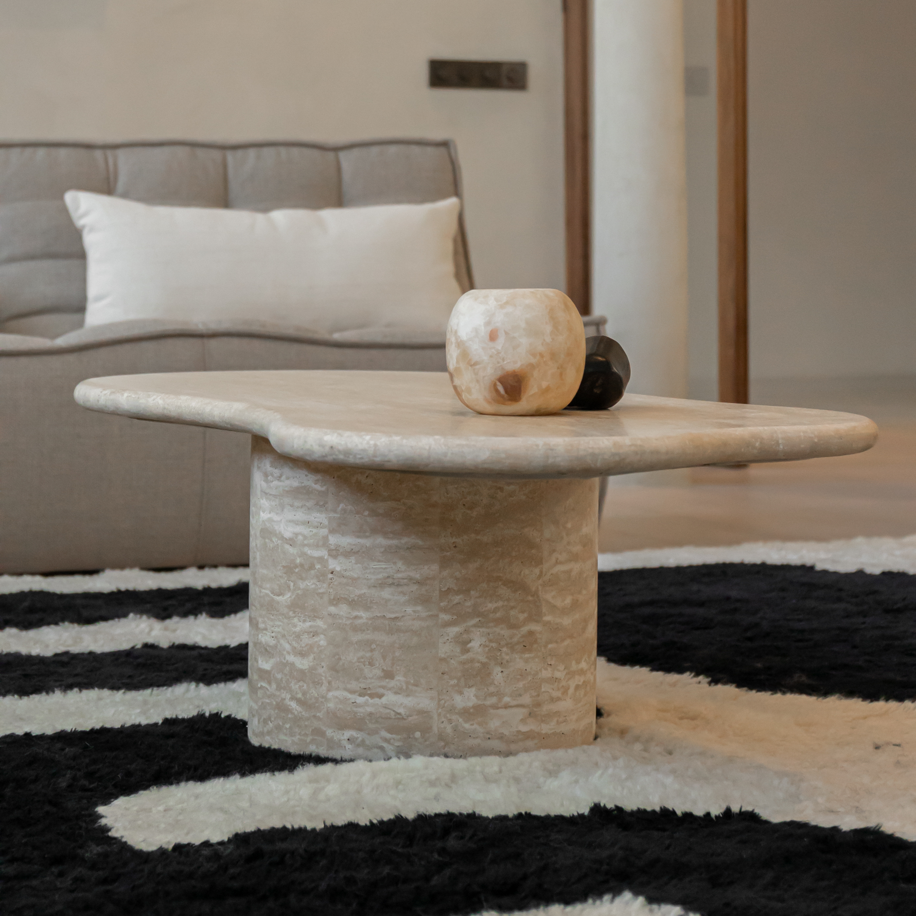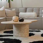 Solidna cylindryczna noga oraz ręcznie wykonany organiczny blat nadają temu stolikowi niepowtarzalny urok. Design stolika to harmonijne połączenie elegancji i funkcjonalności, tworzące hipnotyzujący punkt centralny w Twoim salonie.