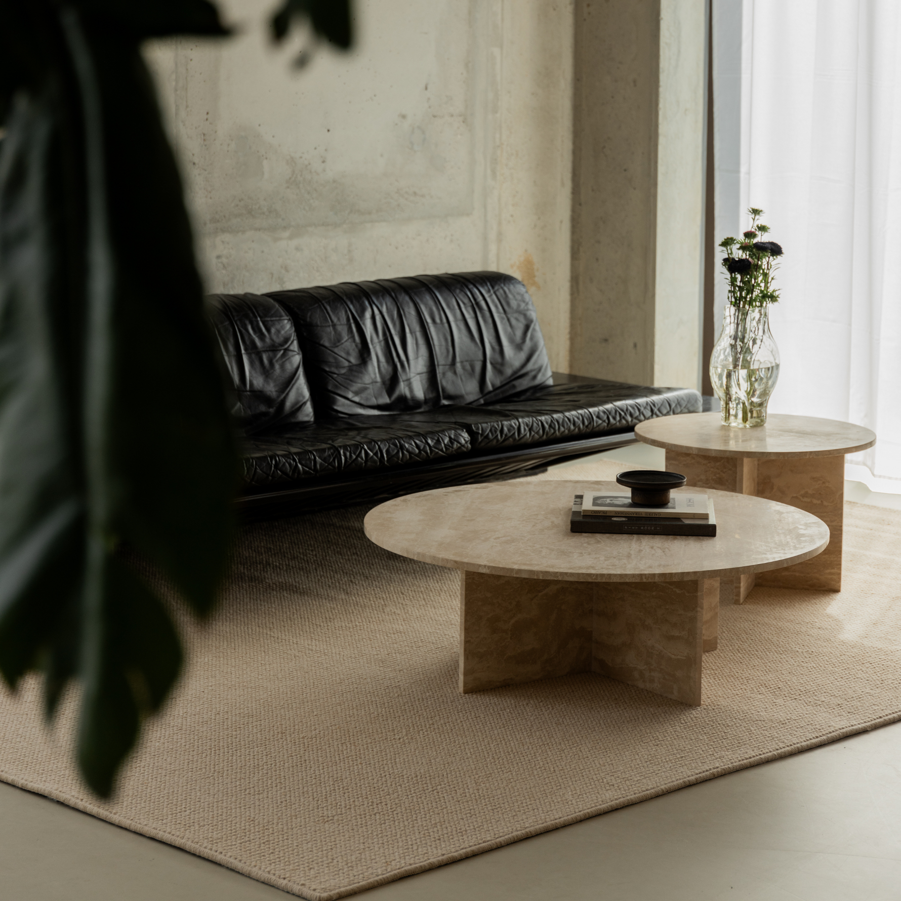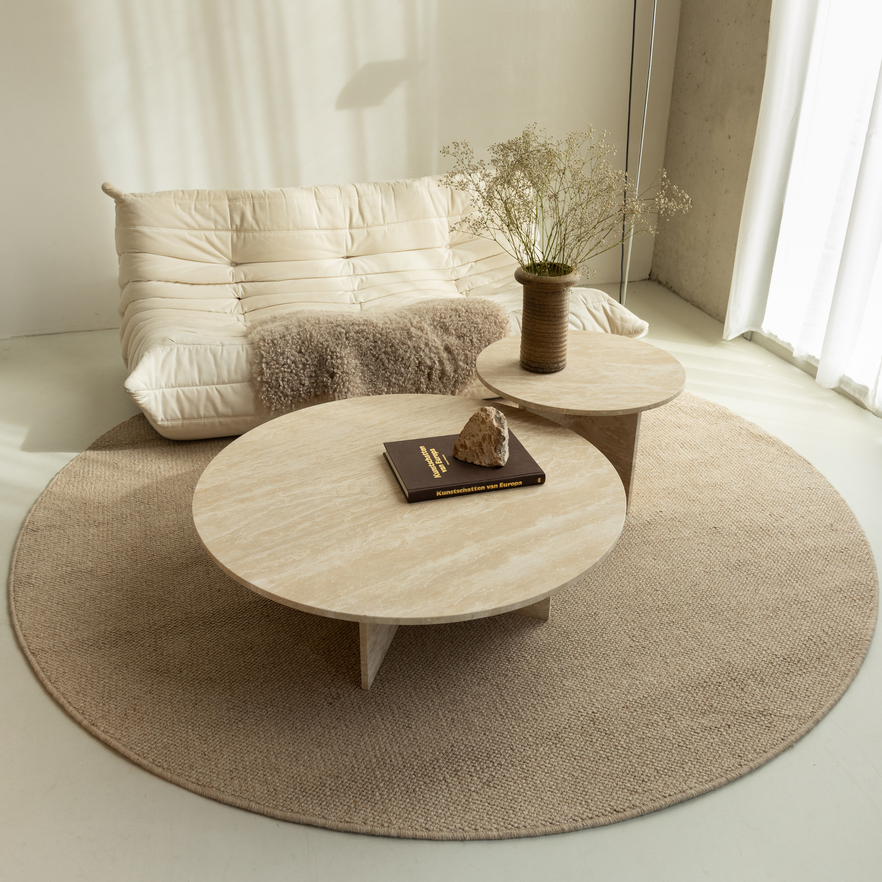 Okrągły zestaw stolików kawowych Paris - trawertyn